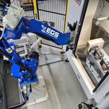 Machine tending in the metalworking industry is commonplace. Whether the process is turning, milling, grinding, drilling, CNC controlled or not, a robot can precisely load and unload parts, removing the inconsistencies of a manual process. Robotic machine tending is not limited to metals; it offers benefits to manufacturers also working with polymers, ceramics and composites. Double grippers are broadly used, allowing to load raw parts and unload finished parts within the same motion sequence.